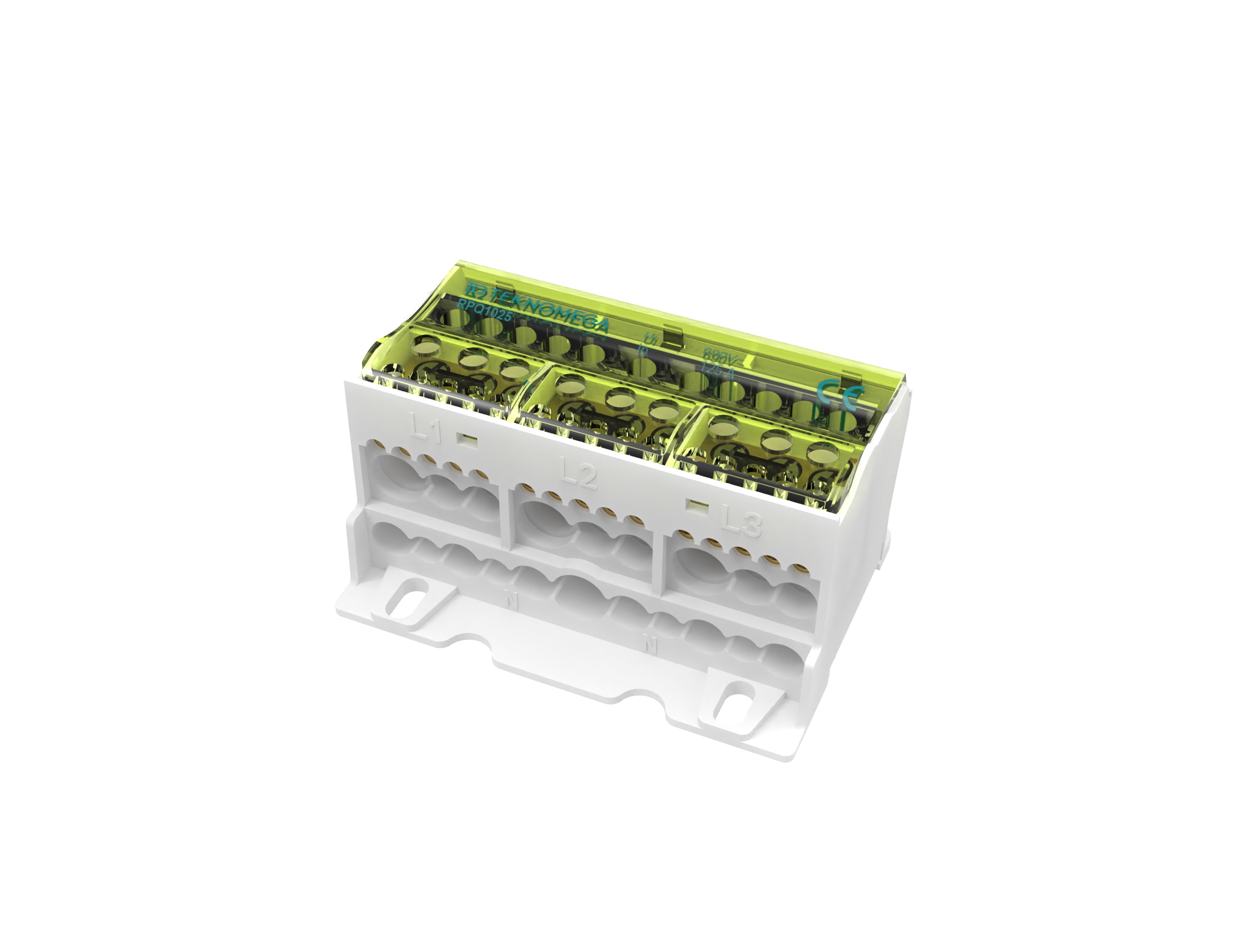 Morsettiera di distribuzione, marca TEKNOMEGA SRL, modello TKGRPQ1025 - RIPARTITORE COMPATTO QUADRIPOL.100 125A7