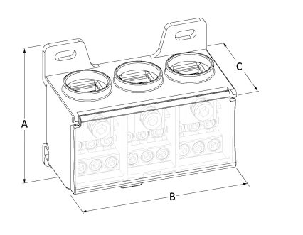 Morsettiera di distribuzione, marca TEKNOMEGA SRL, modello TKGRPT3000 - RIPARTITORE COMPATTO TRIPOLARE 125A 6OUT