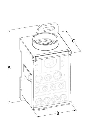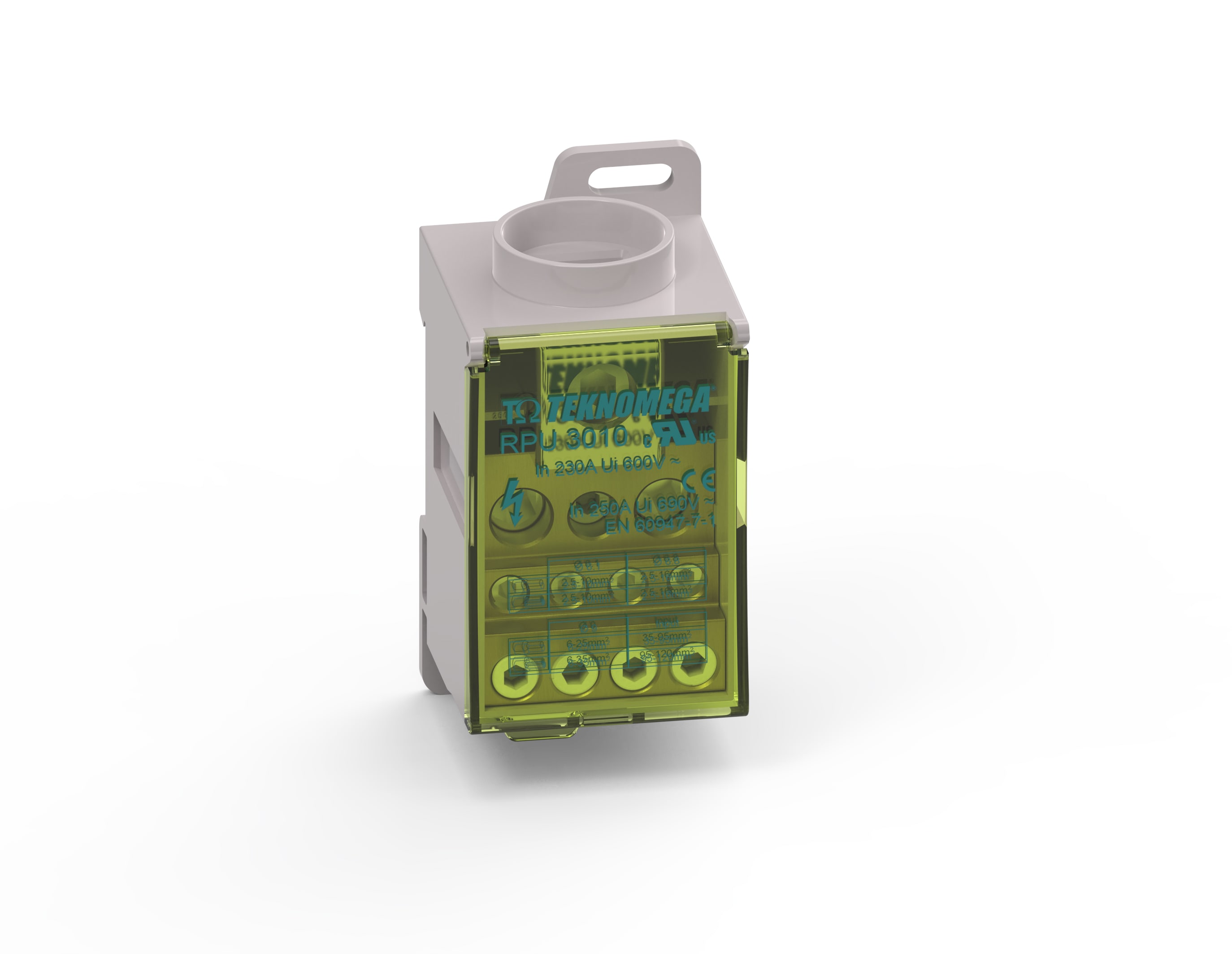 Morsettiera di distribuzione, marca TEKNOMEGA SRL, modello TKGRPU3010 - RIPARTITORE COMPATTO UNIPOL. 250A 11OUT