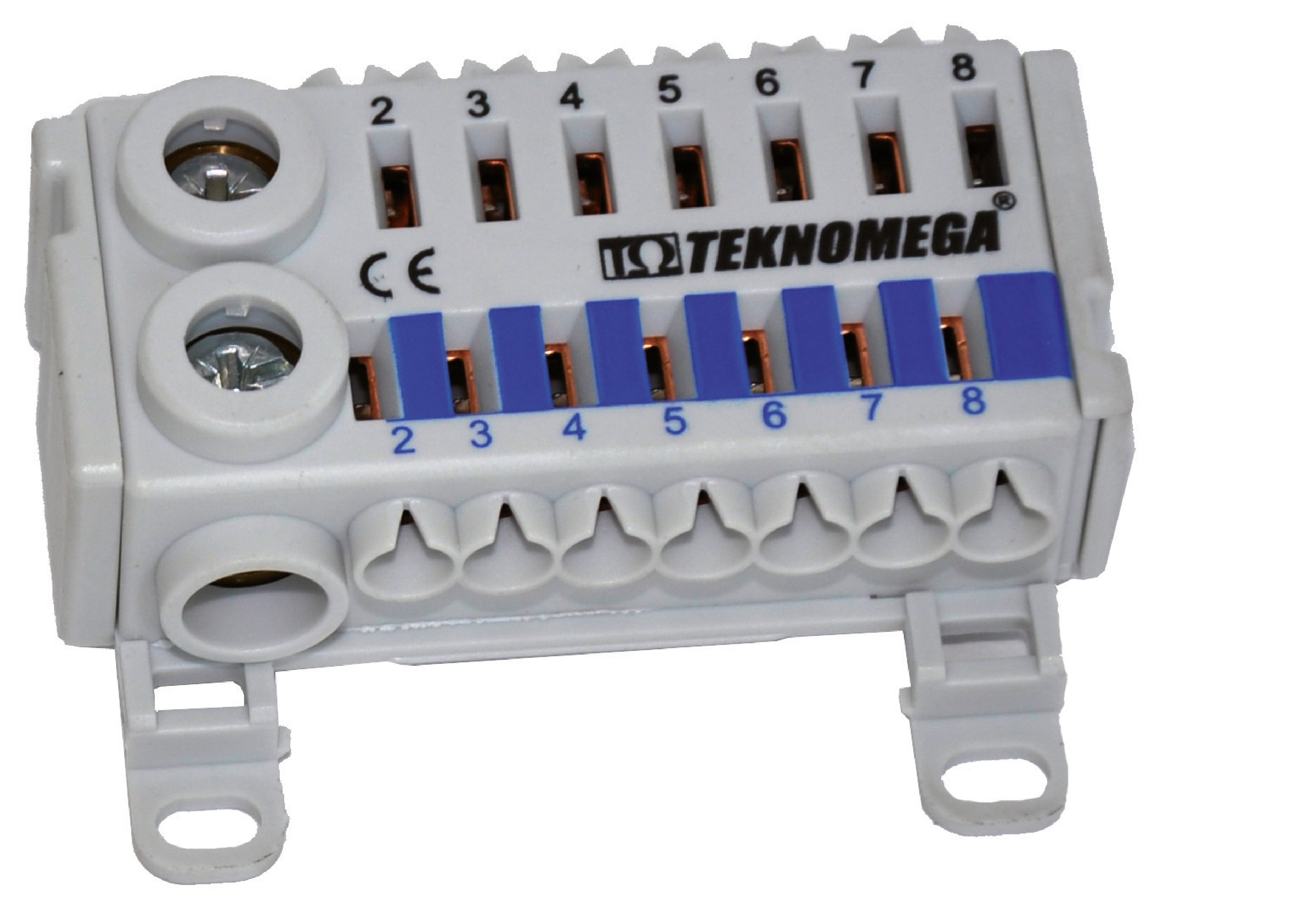 Morsettiera di distribuzione, marca TEKNOMEGA SRL, modello TKGRPU5010 - RIPARTITORE BIPOL.80A 7 OUT INNEESTO MOL