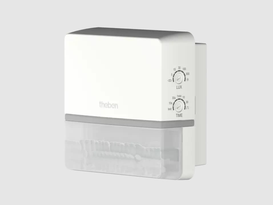 - Rivelatore di movimento a infrarossi passivi per montaggio a parete - Angolo di rivelamento 180°, 14 m - Possibilità di impostare valore di commutazione luminosità e tempo di coda - Misurazione permanente della luce - Rilevamento posteriore (Exit-on) - Misurazione in luce mista adatta per il controllo di lampade fluorescenti, a incandescenza, a alogene e LED - Commutazione a carico nullo per protezione relè e carico da sovracorrenti o sovratensioni - Funzione test per controllare il range di rilevamento - Montaggio possibile su scatola ad incasso (60 mm) - Montaggio semplice della basetta da innesto - Messa in funzione immediata grazie alla preimpostazione - Morsetto per cavo di guardia - Possibilità di ridurre la sensibilità per limitare il range di rivelamento