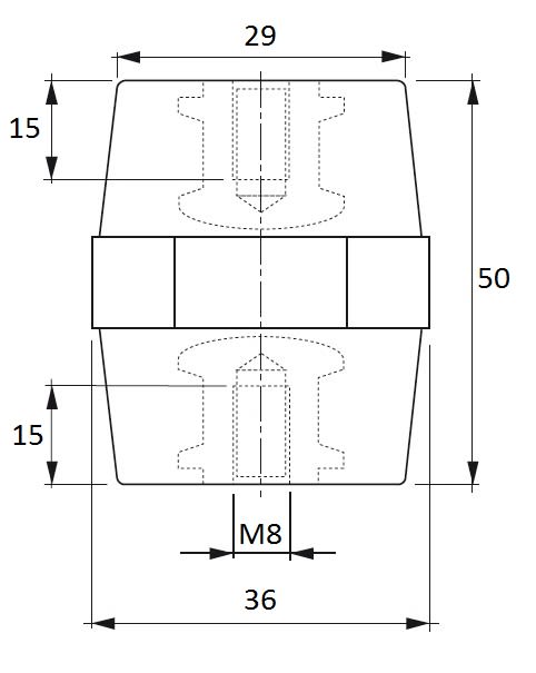 ISOLATORI E PORTASBARRE Altezza: 50 Tipo: Esagonale Inserto: M8