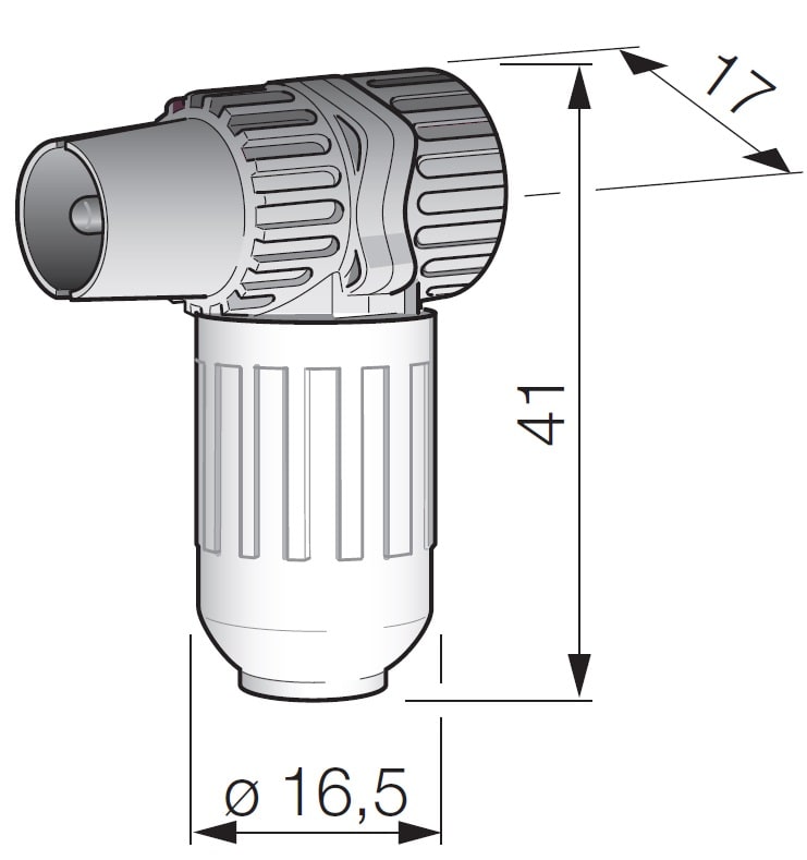 Connettore coassiale maschio IEC 60169-2, uscita cavo a 90° - Z 75 Ω, bianco