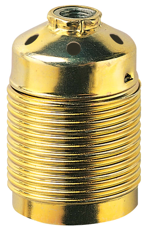 Portalampade E27, raccordo M10x1 con vite di blocco, cappuccio e camicia filettata, acciaio zincato lucido colore ottone