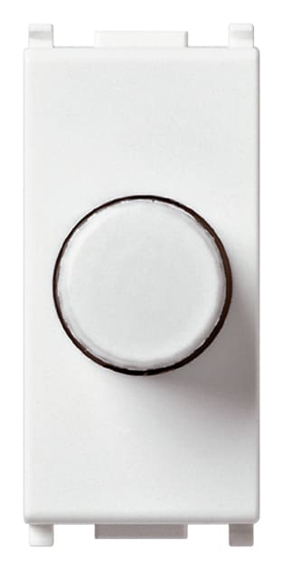 Regolatore 230 V~ 50-60 Hz per lampade ad incandescenza 100-500 W, comando con deviatore push-push e regolazione con potenziometro rotativo, individuazione al buio, bianco