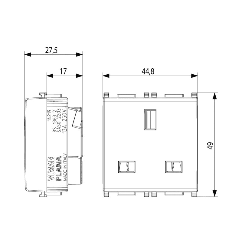 VIMAR SPA - VIW14219.SL PRESA 2P+T 13A INGLESE SILVER - 14219.SL
