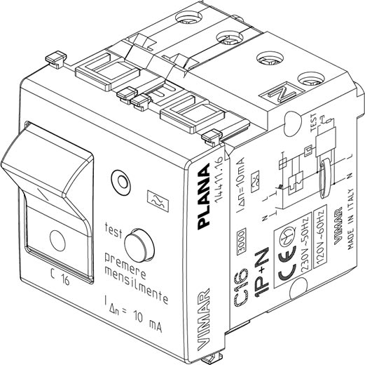 VIMAR SPA - VIW14411.16 INTERRUTTORE MTDIFF.1P+N C16 10MA BIANCO - 14411.16