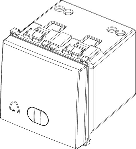 Pulsante SET/RESET per chiamata di emergenza, individuazione al buio, 2 uscite a relè NO 5 A 250 V~ per segnalazione ottica ed acustica, alimentazione 12 V~ 50-60 Hz o 12-24 V d.c. (SELV), grigio - 2 moduli. SET con pulsante incorporato o da più punti con pulsanti NC collegati in serie. RESET da più punti con pulsanti NC collegati in serie
