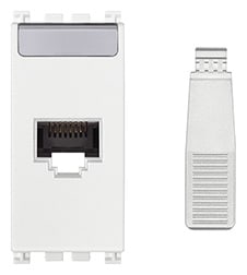 Presa RJ45 con connettore Netsafe Cat. 6, schermata, cablaggio universale T568A/B, 8 contatti, morsetti ad incisione d'isolante senza utilizzo di utensile, bianco.