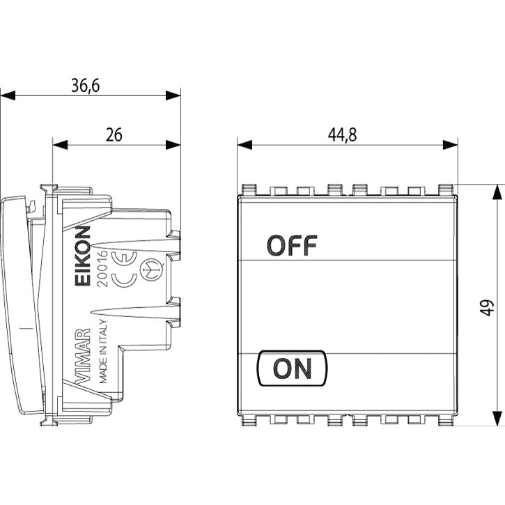 VIMAR SPA - VIW20016.2.B INTERRUTTORE 2P 20AX 2M BIANCO - 20016.2.B