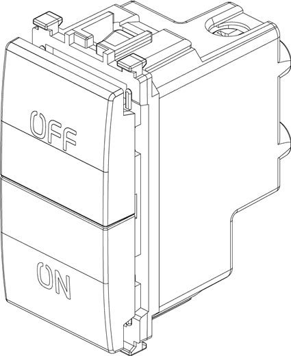 Due pulsanti indipendenti 1P NO + 1P NC 10 A 250 V~, simboli ON e OFF, grigio