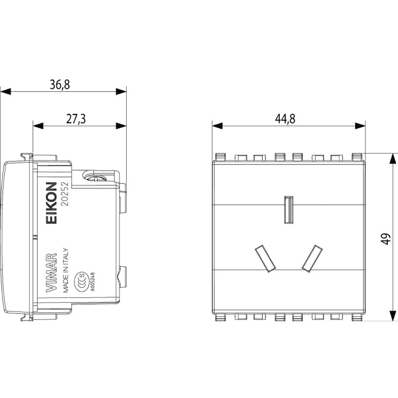 VIMAR SPA - VIW20252 PRESA SICURY 2P+T 10A CINESE 2M GRIGIO - 20252