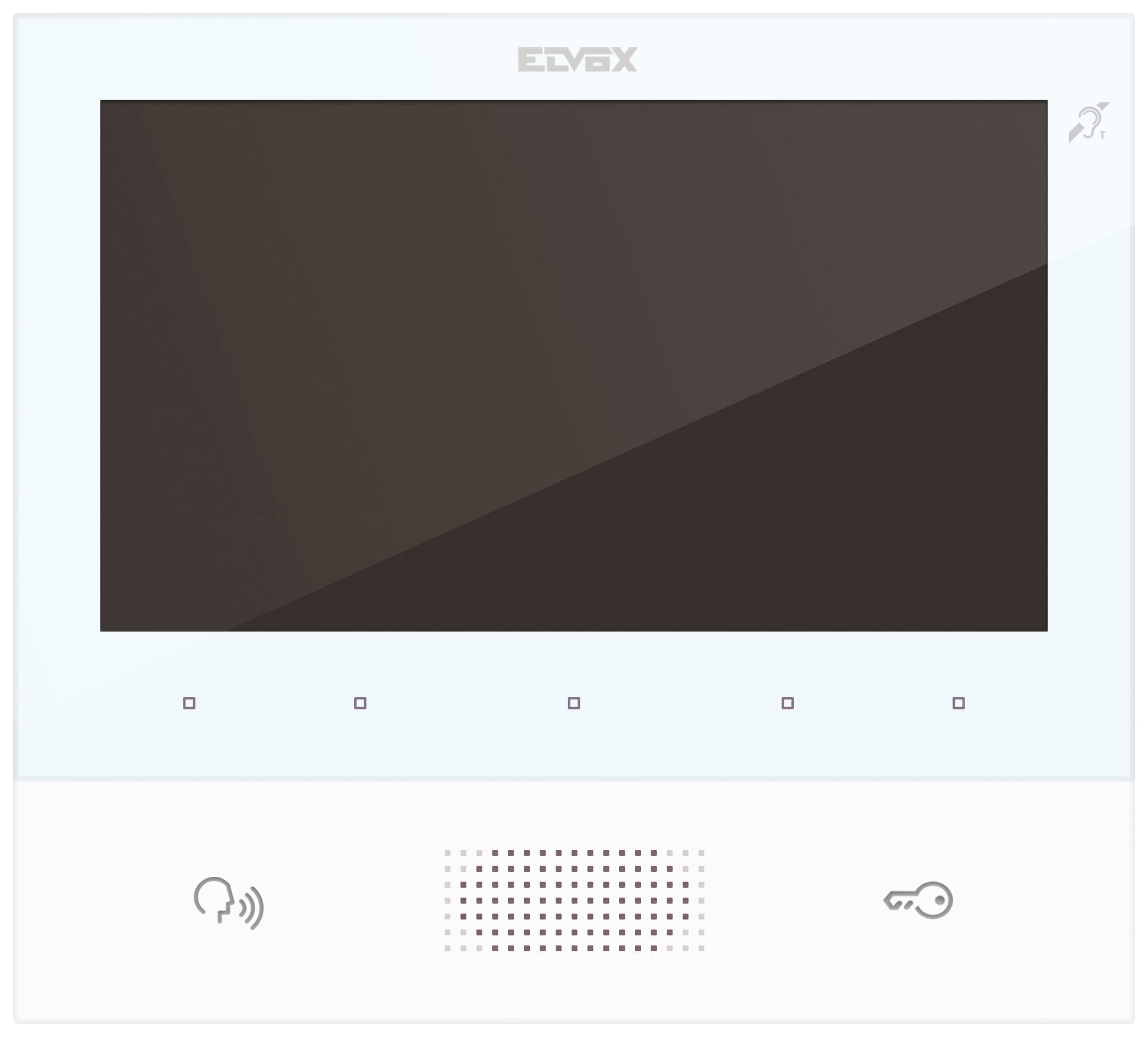 Videocitofono vivavoce da parete per sistema Due Fili Plus con display a colori LCD 7 in, tastiera capacitiva per funzioni videocitofoniche e chiamate intercomunicanti, teleloop per protesi acustiche, staffa per il fissaggio su scatola rettangolare o rotonda, bianco.