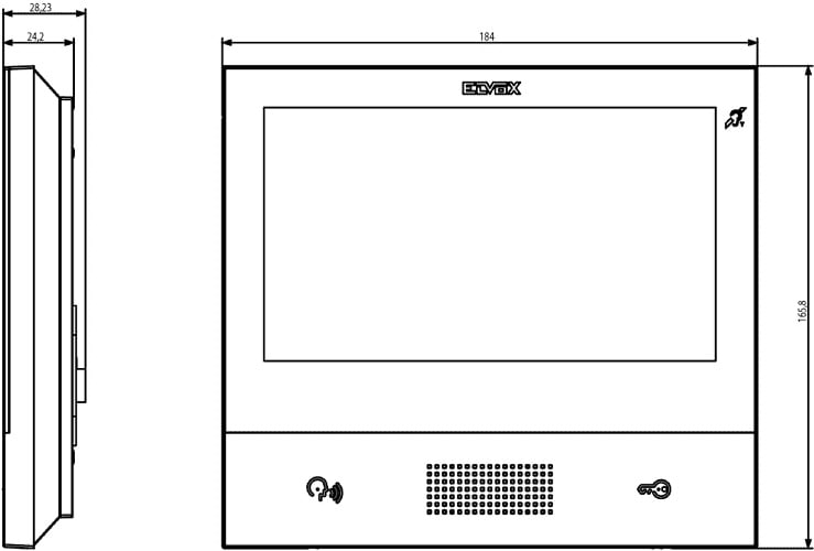 Videocitofono vivavoce da parete per sistema IP, WI-FI integrato per remotizzazione su smartphone con app dedicata, display a colori LCD 7 in touch-screen, tastiera capacitiva per funzioni videocitofoniche e chiamate intercomunicanti, videosegreteria, teleloop per protesi acustiche, staffa per il fissaggio su scatola rettangolare o rotonda, alimentazione PoE, bianco.