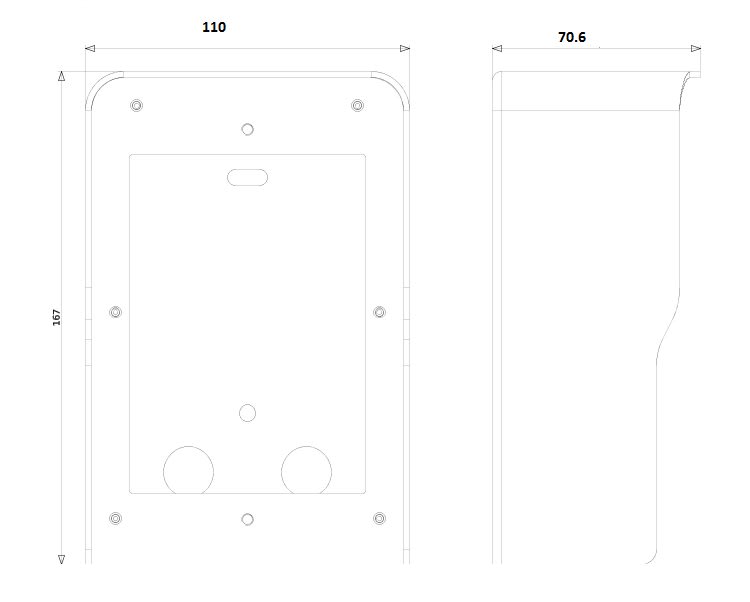 Scatola parete con cornice parapioggia incorporata 1 modulo Pixel, grigio anodizzato. Dimensioni 110x167x70,6 mm