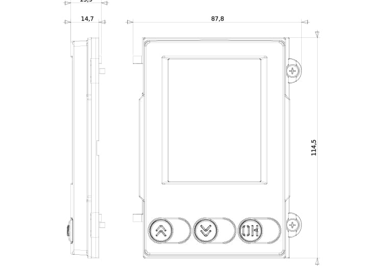 Moduilo frontale display, Pixel Heavy, per unità elettronica 41018, grigio sablé. Protezione agli impatti meccanici esterni IK09, grado di protezione IP54