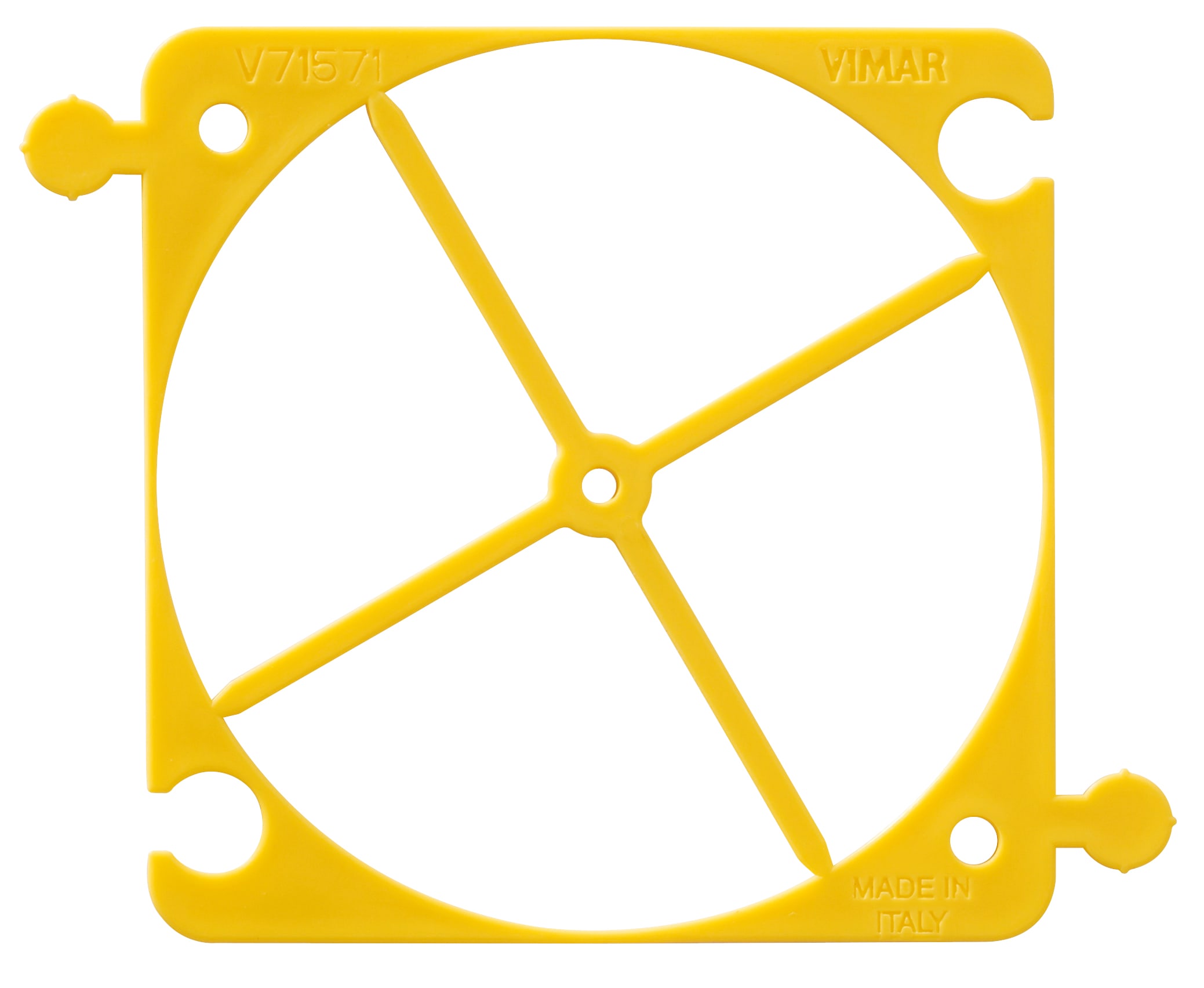 Accessorio multifunzione: supporto per installazione di scatole 2 moduli per pareti leggere sul lato interno della parete, dima di centraggio e giunto di unione per montaggio di scatole in batterie orizzontali e verticali.