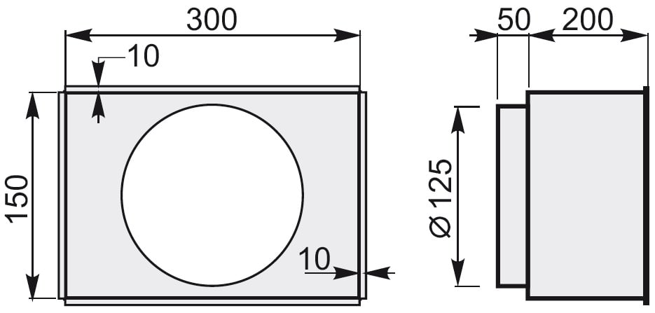 Raccordo da applicare a parete tra griglia esterna e prodotto o tubi con terminali Ø 125 mm.
