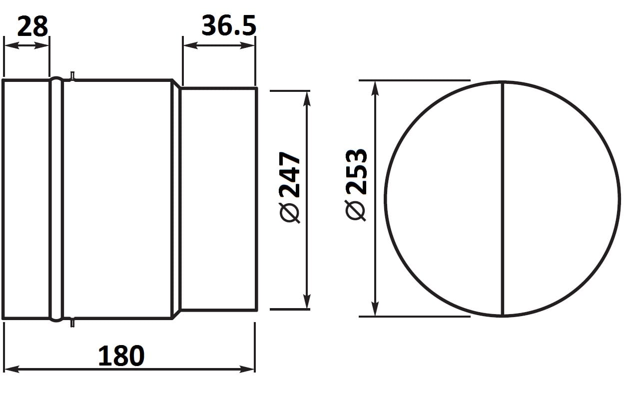 VALVOLA DI NON RITORNO- Da montare direttamente nei condotti di ventilazione o sull’uscita del prodotto.- Composta da un cilindro in acciaio zincato.- La chiusura e la tenuta sono garantite da una guarnizione di tenuta in neoprene.