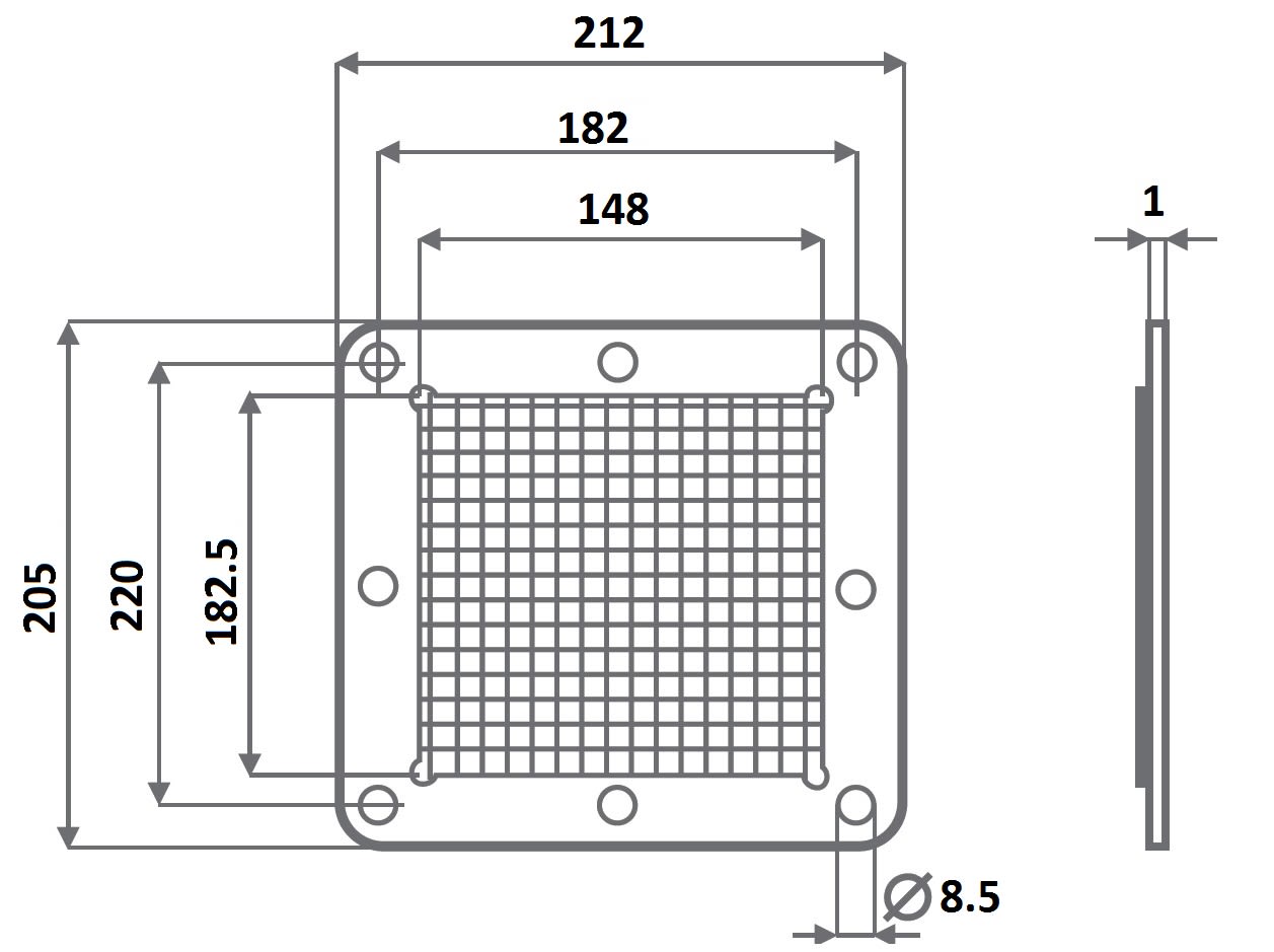 Griglia di protezione lato mandata - Da applicare al prodotto sul lato di mandata per proteggere le parti in movimento nel caso l’apparecchio sia installato in posizione accessibile