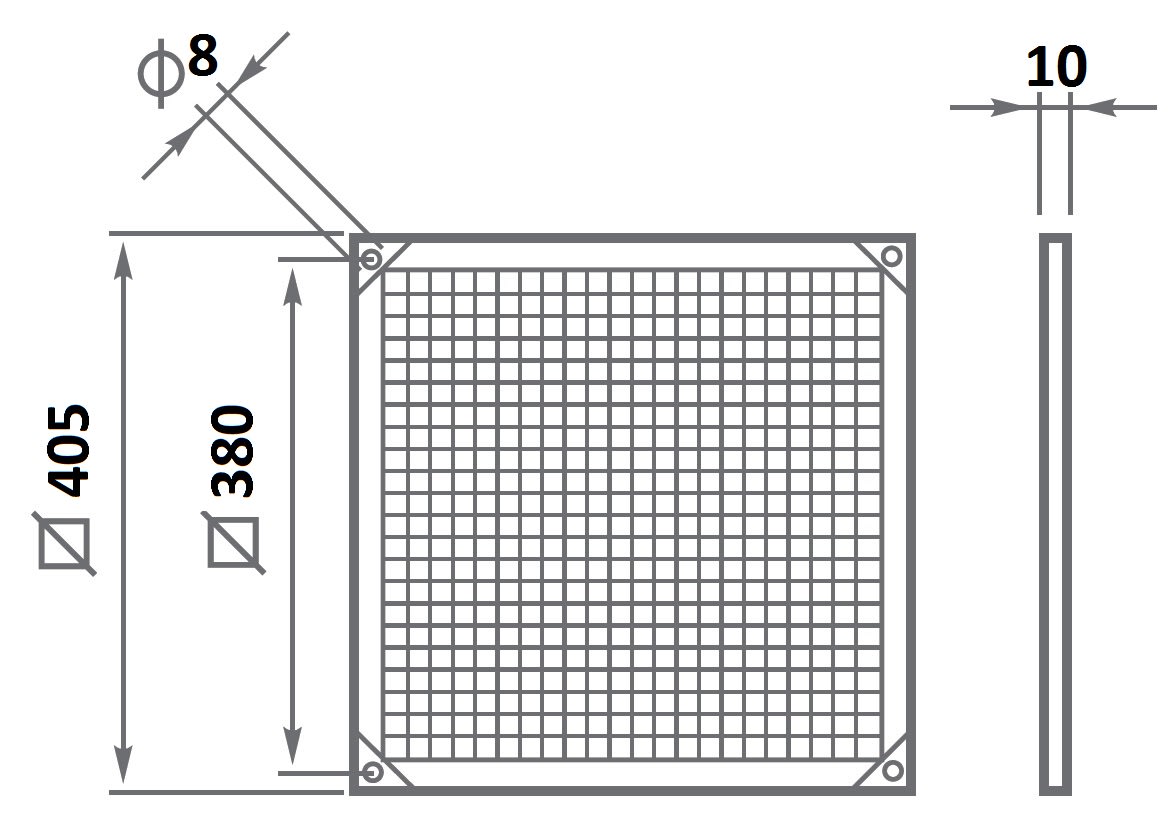 Telaio con rete - Da applicare al prodotto sul lato di aspirazione per proteggere le parti in movimento nel caso l’apparecchio sia installato in posizione accessibile (NORMA EN 294)