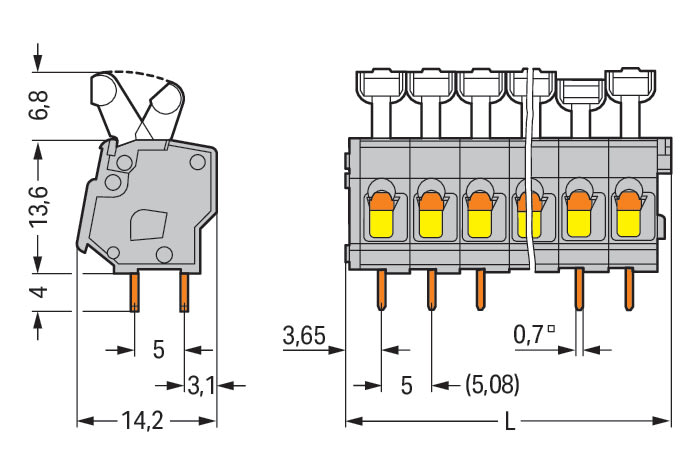 WAGO ITALIA SRL - WAG257-405 PULSANTE MORSETTO PER CIRCUITO STAMPATO - 257-405
