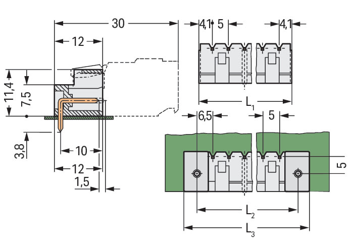 Angolo circuito stampato/contatto: