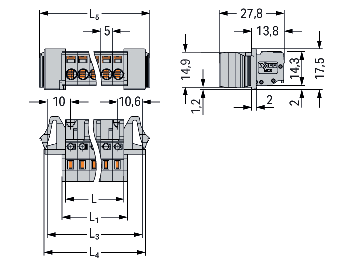 WAGO ITALIA SRL - WAG723-606 CONNETTORE MASCHIO PER 1 CONDUTTORE CAGE - 723-606