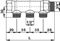 WATTS INDUSTRIES ITALIA SERIE E807M COLLETTORE LINEARE OTTONE ?3/4" MASCHIO/FEMMINA TRE DERIVAZIONI ?1/2" MASCHIO
