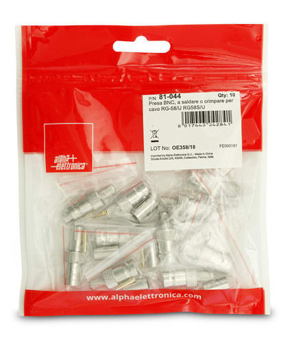ALPHA ELETTRONICA SR - ALP81-044 BNC solder or crimp socket for RG-58/U RG58S/U cable wire