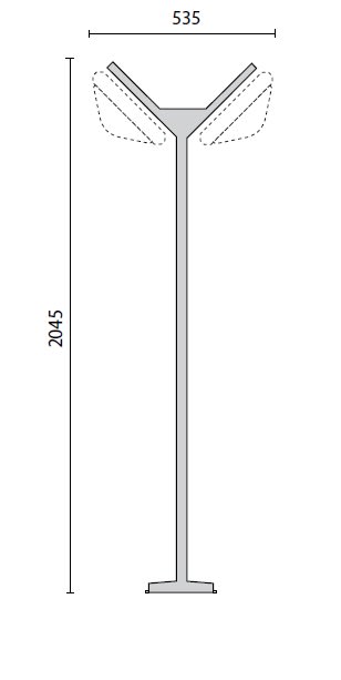Palo in alluminio per alloggiare uno o due apparecchi, costituito da: Palo in alluminio estruso verniciato per alloggiare uno o due apparecchi su mensola. Mensole in tecnopolimero autoestinguente. Scatola di derivazione in tecnopolimero autoestinguente con morsetto a 4 poli 16 mm2. Altezza del palo: 2045 mm